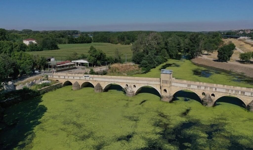 Tunca Köprüsü ve Kanuni Köprüsü çevresindeki nehrin yüzeyinin neredeyse tamamı yosun ve su mercimeğiyle kaplıydı.
